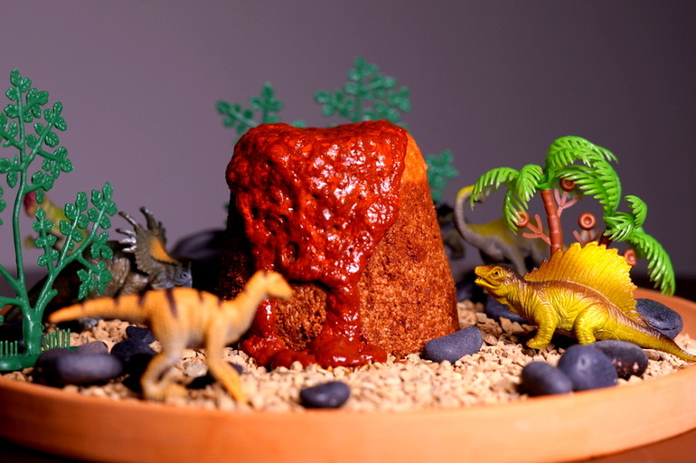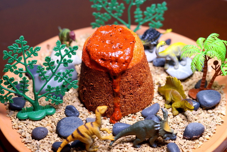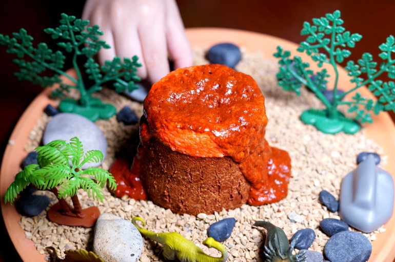 Ведь это так увлекательно - наблюдать с детьми настоящее извержение вулкана у себя дома! (Тем более, когда ты и твои дети по уши увязли в теме динозавров)