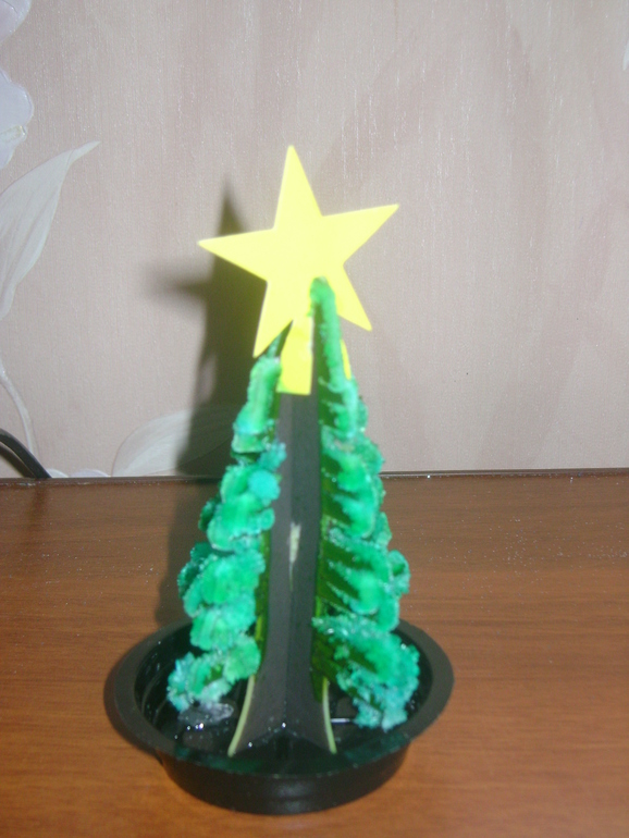 И вот такую елочку мы получили как задание)Пока еще в процессе кристаллизации)У кого кристаллики будут обсыпаться можно сбрызнуть лаком для волос