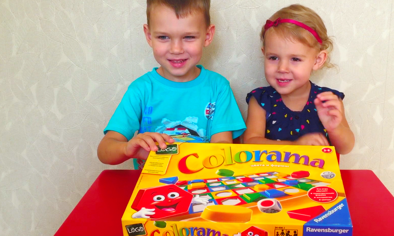 Настольные игрыИграли мы недавно в настольную игру "Колорама", для погодок самое то. Ну и не только для погодок) До 3-х лет её можно использовать просто как обучающая игра. Маруся не была заинтересована выиграть, но с удовольствием находила фигурки определённых цветов, которые выпадают на кубиках. Там их два: первый - для выбора цвета, второй - для выбора фигурки. На одной стороне каждого кубика еще имеется джокер, который на кубике для выбора цвета означает любой цвет, а на кубике для выбора формы - любую форму. А Ваня уже стремился победить, то есть собрать как можно больше фигурок.