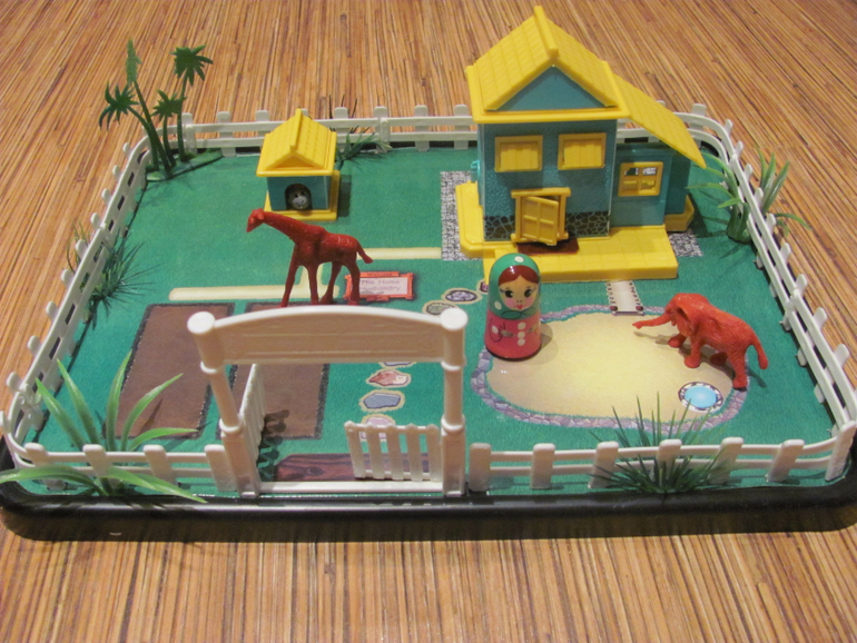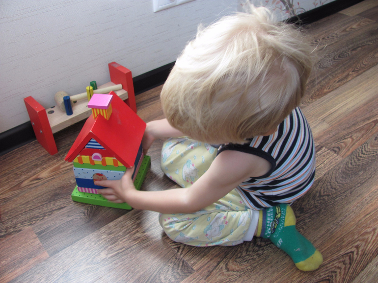 2. Такой вот наборчик (купленный за 50р). Там домик и будка разбираются, играл в возрасте от 1,5 до 3 лет.