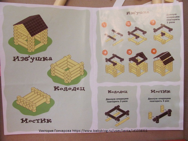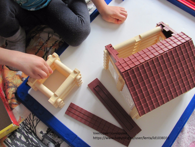 Строим. Из нашего набора можно собрать один большой дом и колодец. Или два маленьких дома.