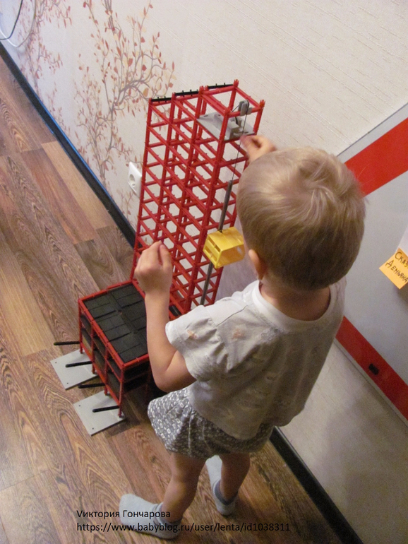 Скажу честно, сначала хотела продать. Один раз собрали в восторге (в возрасте 3,6) и стоял без внимания. И мне показалось немного не уверенно стоит башня, т.к ребенок играет лифтом ,а башня двигается. Я убрала и уже выставила на продажу. Через какое-то время ребенок начал просить эту коробку. Дождавшись 101 желания у ребенка собрать этот конструктор, коробку вытащила. И уже играет пару месяцев точно, и зря оказывается переживала что небоскреб развалится. Собирает конечно с моей помощью, т.к по схеме ему сложно. Но то что запомнил, собирает сам. Ну и небольшой фоторепортаж со стройки))