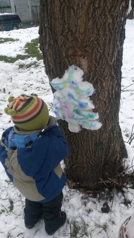 Раскрашиваем с помощью чудесных фломастеров из фикс-прайса. Очень удобно, детки чистые, снег красивый.