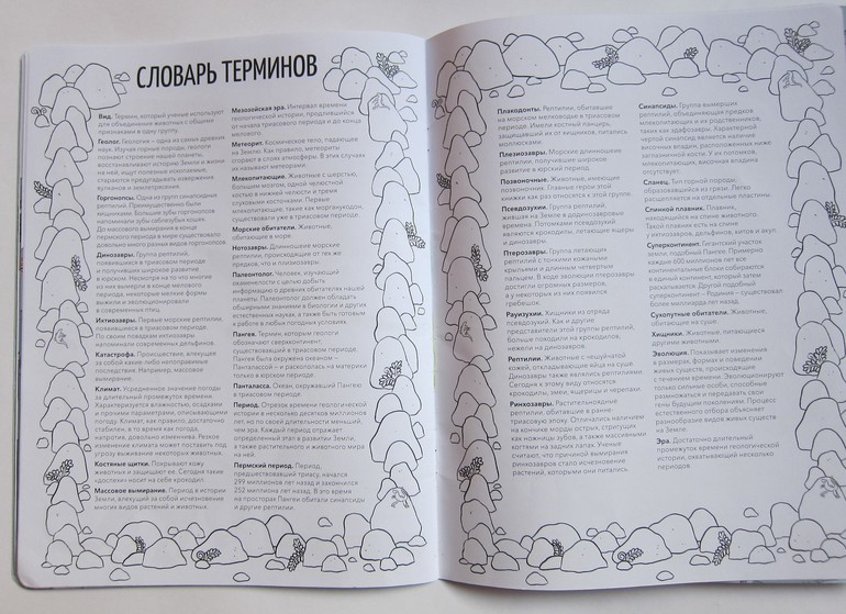 Это не толстая энциклопедия и это не о тираннозаврах, велоцерапторах и других привычных нашему слуху наименованиях динозавров. Это книга-игра о самых первых ящерах на земле. Нашему вниманию предлагается краткая информация о том, что из себя ящеры представляли (какой формой тела они обладали, что ели и в какой среде обитали) и разнообразные задания с этими милыми зверюшками. Из названия книги вы уже могли понять, что дело будет происходить в Триасовом периоде (остальные периоды сами вспомните или помочь?)))