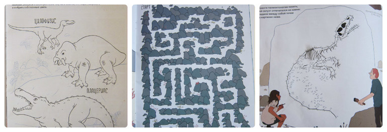 О заданиях. Кроме привычных "разукрась, дорисуй по цифрам, выведи ящера из лабиринта"