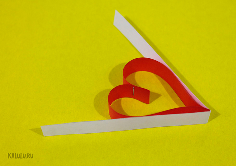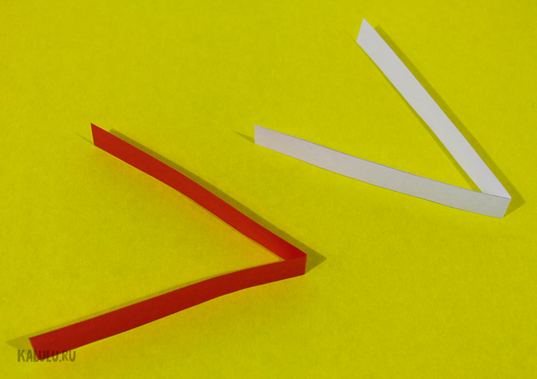 Удерживая концы первой детали, расположите их возле сгиба второй полоски: