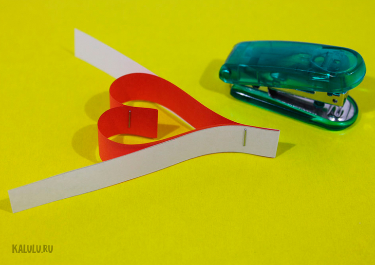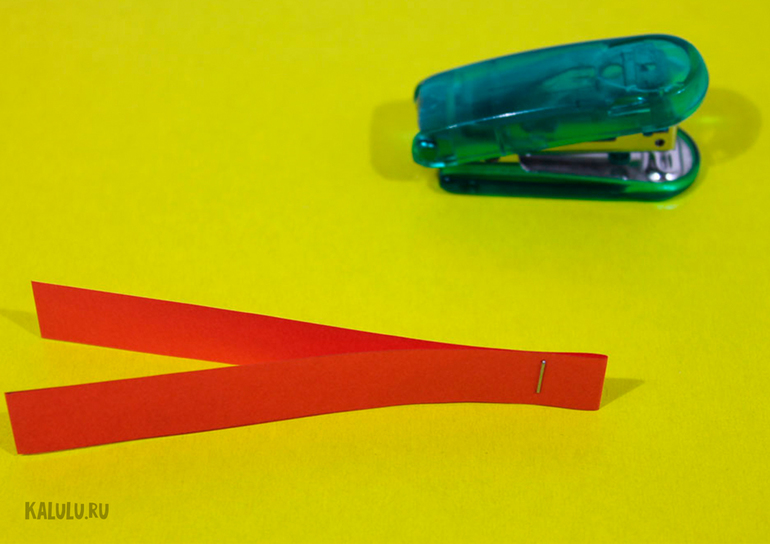 Возьмите одну полоску и скрепите ее скобой на расстоянии 1-1,5 см от сгиба (или проклейте клеем):