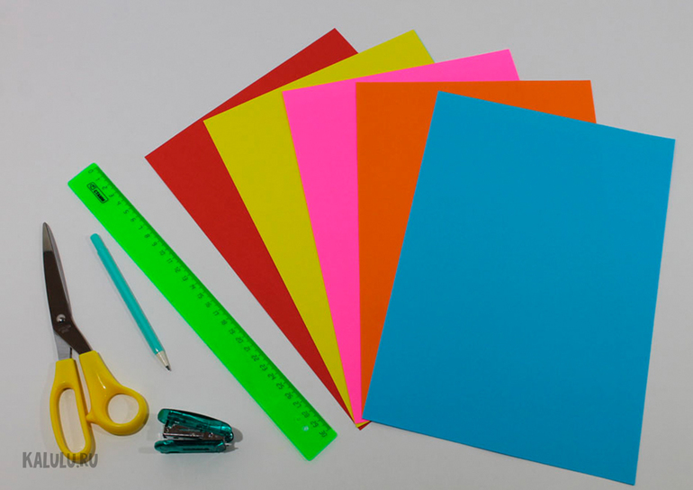 Вам понадобятся: листы цветной или белой бумаги, линейка, карандаш, ножницы, степлер (со скобами №10) или клей-карандаш.