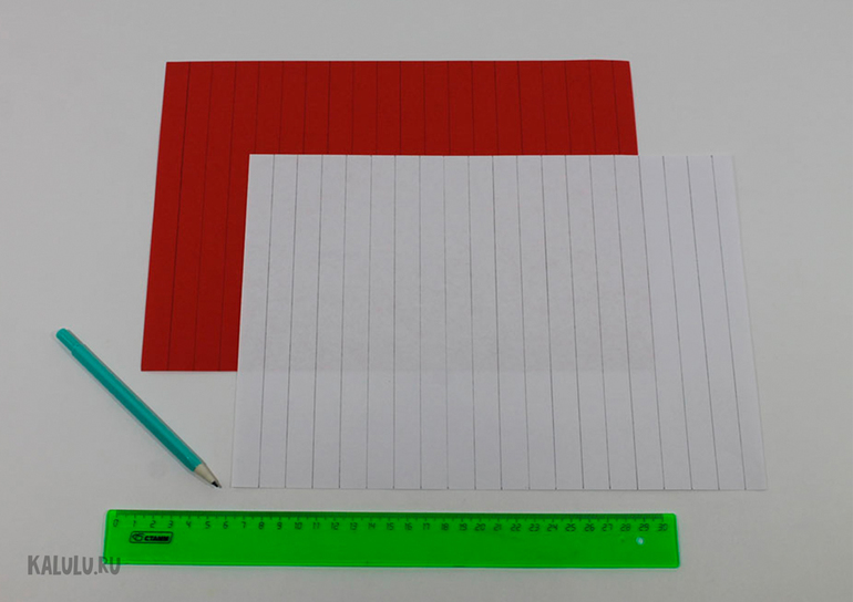 Расчертите лист на полоски шириной 1,5 см (из 1 листа получится 19 полосок):