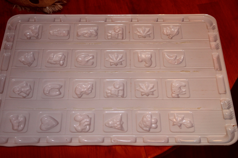 Разное (если затрудняетесь с выбором)Сегодня Маша съела последнюю шоколадную конфетку из новогоднего(рождественского) календаря. И мы опробовали форму из под конфет для пластилина. Очень здорово получилось! А пластилиновыми конфетками мишку накормили.