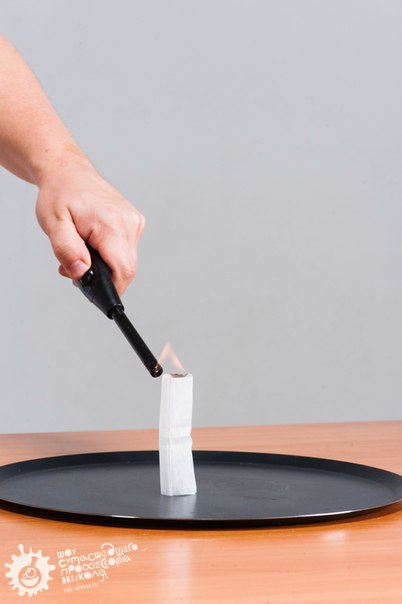- расправим пакетик, придав ему форму цилиндра, и устанавливаем его на поднос;