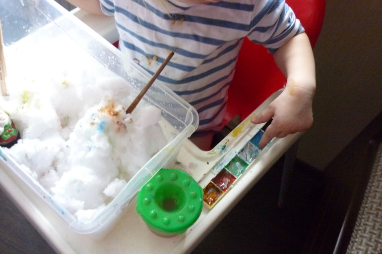 Рисовали на снегу. Сначало одной кистью, но Сашке показалось мало, взяла еще одну))