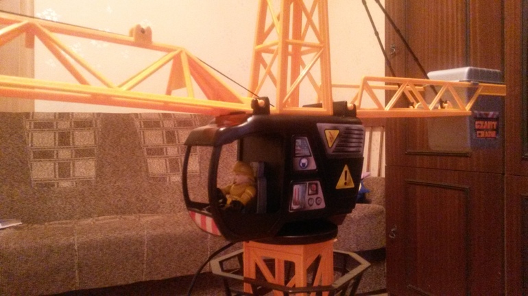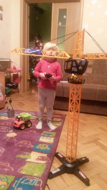 Радости было, визгу! Кран почти с него ростом, на пульте управления.