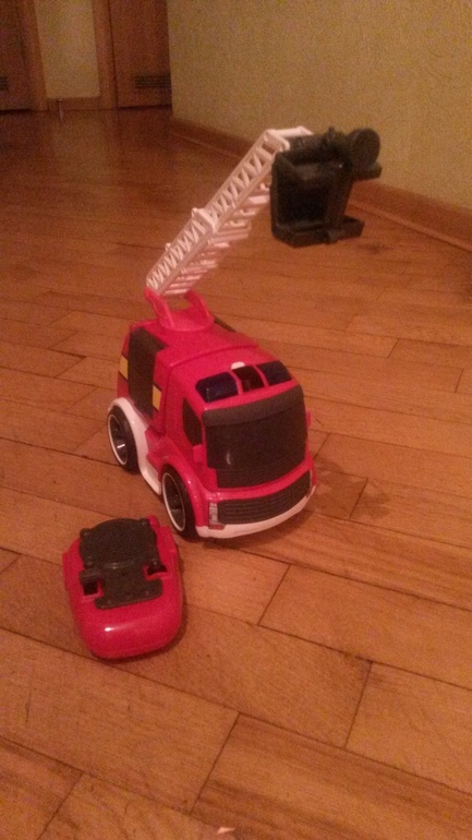 Пожарная машинка тоже на пульте управления. Мигает, гудит, резво едет.