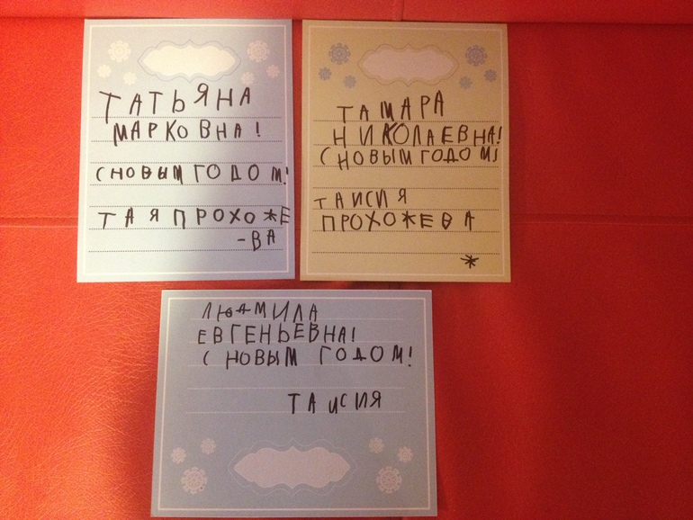 подписали открытки и украсили пакеты для воспитателей в садике