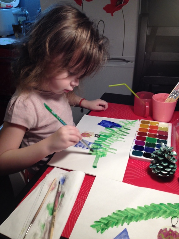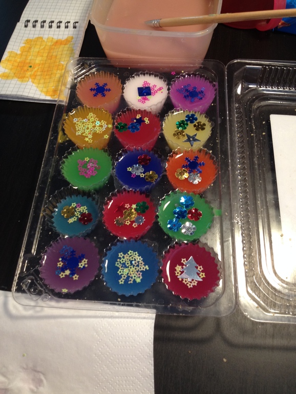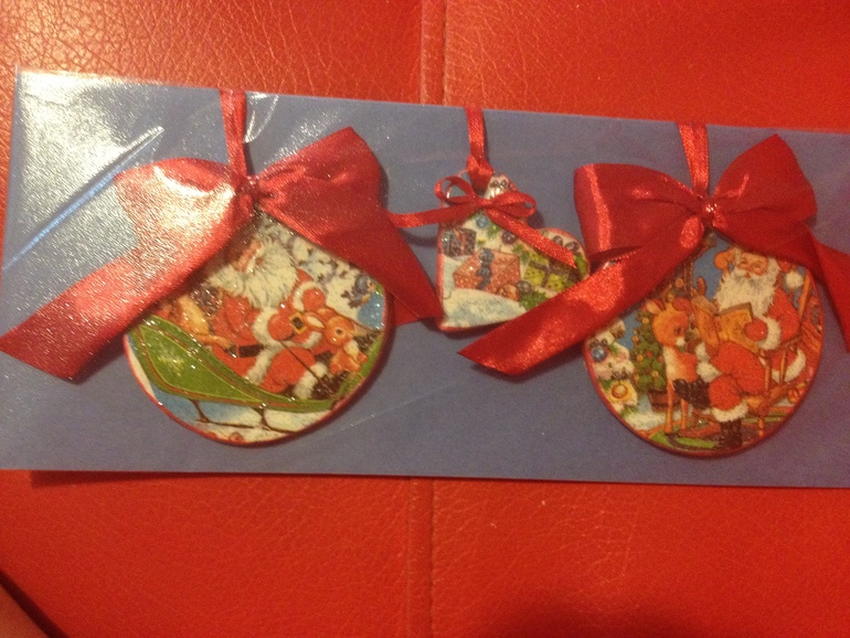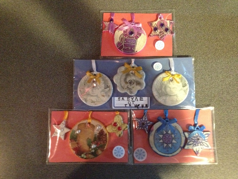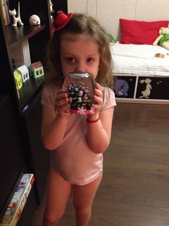 во время ожидания нового года мы много творили, делали елочные игрушки из глины, для близких и друзей, волшебный шар с блестками, открытки