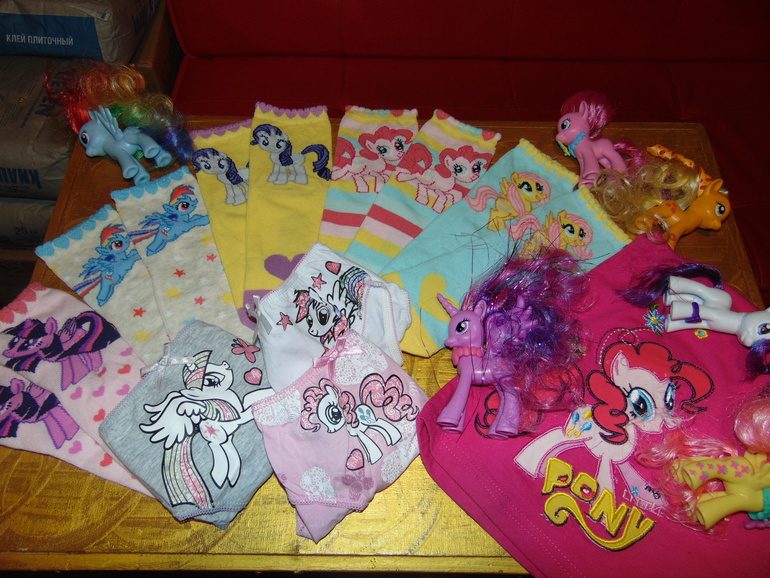 Тая очень просила пони, поэтому от нас с мужем получила полный комплект одежды с пони и недостающие лошадки