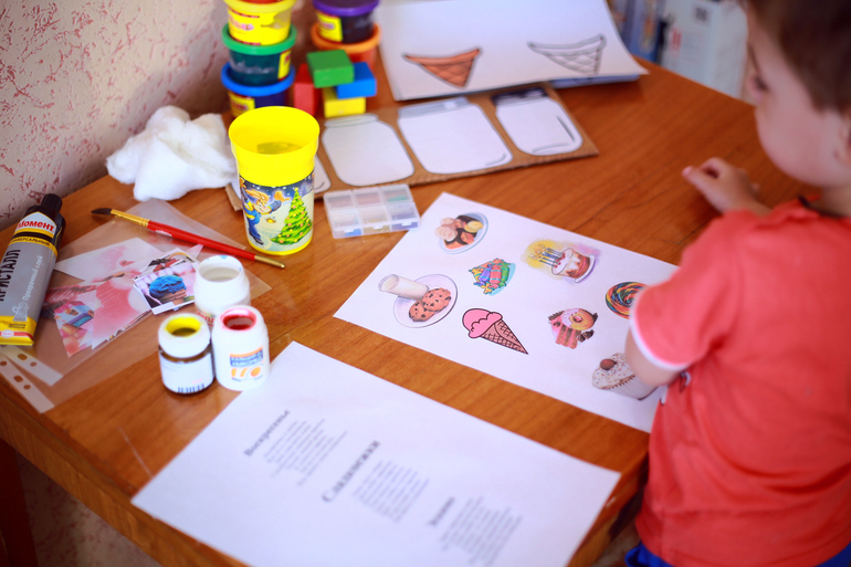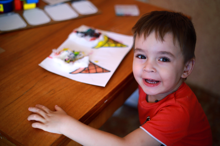 Еще распечатала картинки мороженок разных цветов. Хотела, чтобы мы рассортировали мороженое по цветам(синий, желтый, красный, зеленый). Но сынок устал от длительного занятия и побежал играть в конструктор. Наверстаем в следующий раз)