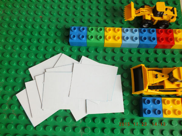 Итак, дано было две машины, каждая из которых строит дорогу. За кубиками, из которых дорога строится, машины отправляются на склад. Начальник склада очень строг, выдает кубик только той машинке, которая отвечает на вопрос. Тянем карточки, отвечаем на вопрос, получаем кубик и строим дорогу. Победил тот, чья дорога длиннее.