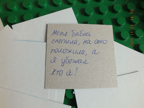 Я просто разрезала лист на карточки, на одной стороне которых написала вопросы.