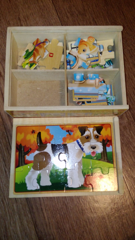 Пазлы пока особо не уважает, составляет только крупные и не более 30 частей, правда из последних поезд ей понравился, собирает его сама.
