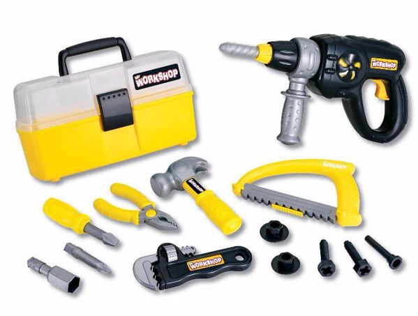 Любим ролевые игры: и готовит (и посудка, и кухня куплены тоже больше года назад), и играет в кассу (с прошлого 8 марта), лечит обязательно всех, помогает папе мастерить....