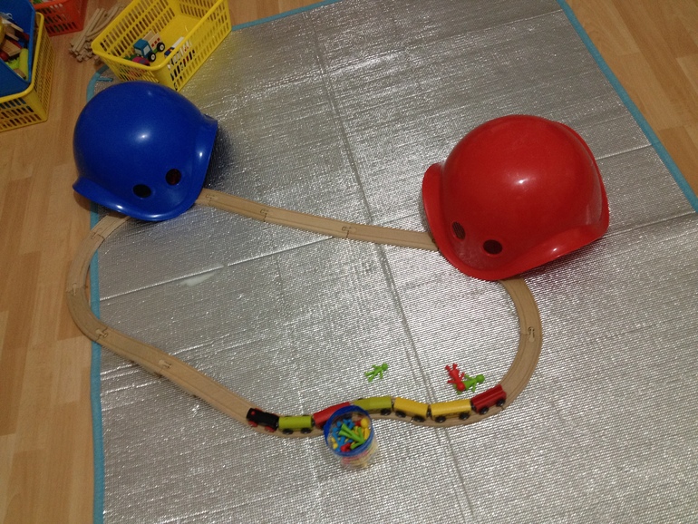 Игры и игрушки для ребят от 3 лет и старшеПривычное использование наших двух "черепашек" (аналога Билибо/Bilibo), сын любит делать из них тоннели))) так смешно наблюдать, как он лежа смотря в щели пытается прокатить поезд по тоннелю:-)