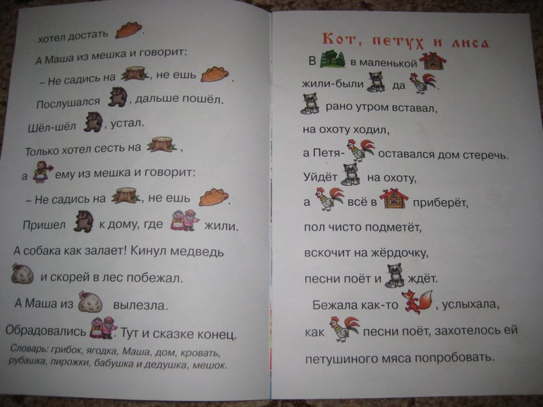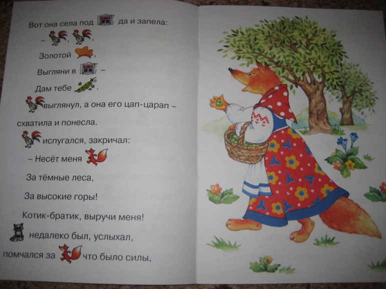А моя дочка, после нескольких таких прочтений, уже глядя просто на картинки, практически полностью рассказывает сказку.
