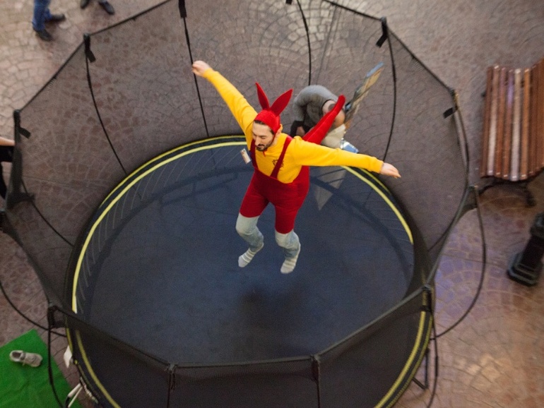 Праздник не обошелся и без главного символа Австралии - кенгуру. Каждый мог попробовать себя в роли прыгучего зверя. Для этого были джоли-джамперы и батут.