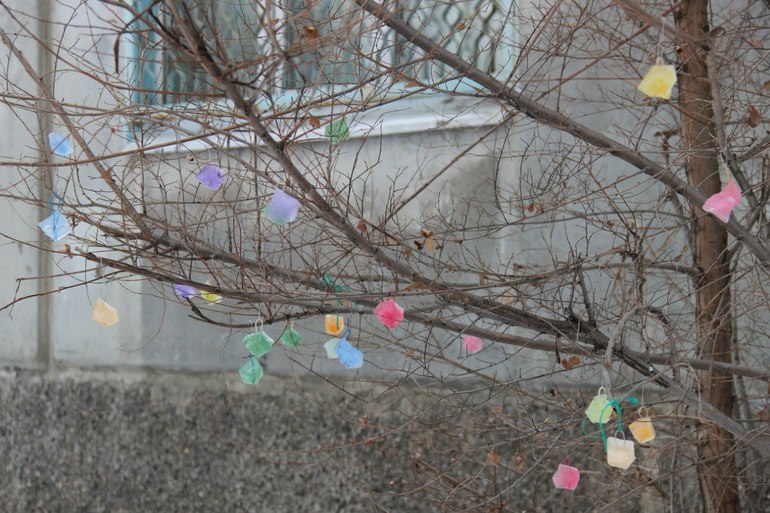 Дерево видно из окна кухни, и я периодически подходила к нему полюбоваться, прижимаясь лбом к стеклу. Породу нашего любимого дерева я не знаю, не помню просто, весной определим ))