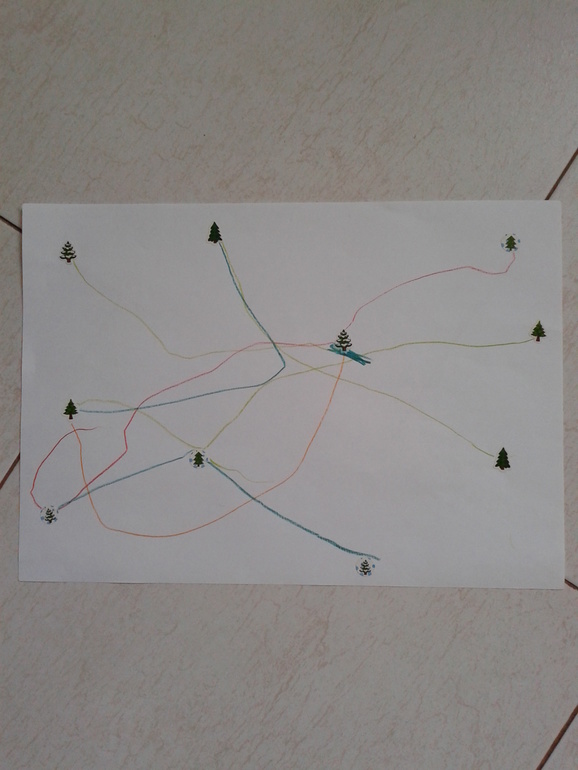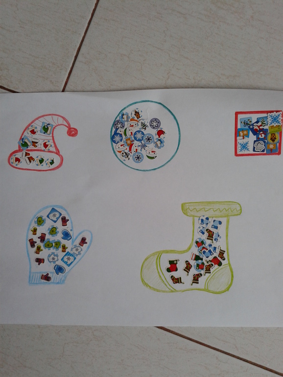 Первый самый простой вариант - проводилки, сказано-пересказано про них уже по-моему все. Мой быстрый вариант получился из малюсеньких наклеек ёлочек (у нас вот такие) . Опять же можно и нарисовать.