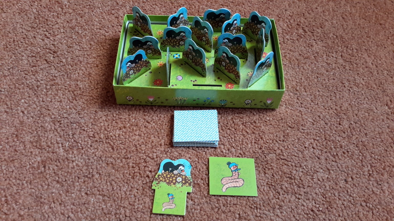 В центре стола ставится игровое поле - сама коробочка. В специальные прорези устанавливаются карточки с Кротиком. Карточки с картинками кладутся около коробочки колодой, лицевой стороной вниз. Игрок берет верхнюю карту из колоды, на ней изображен кто-то из друзей Кротика. Именно этого друга и надо найти. Игра заканчивается, когда все друзья найдены.