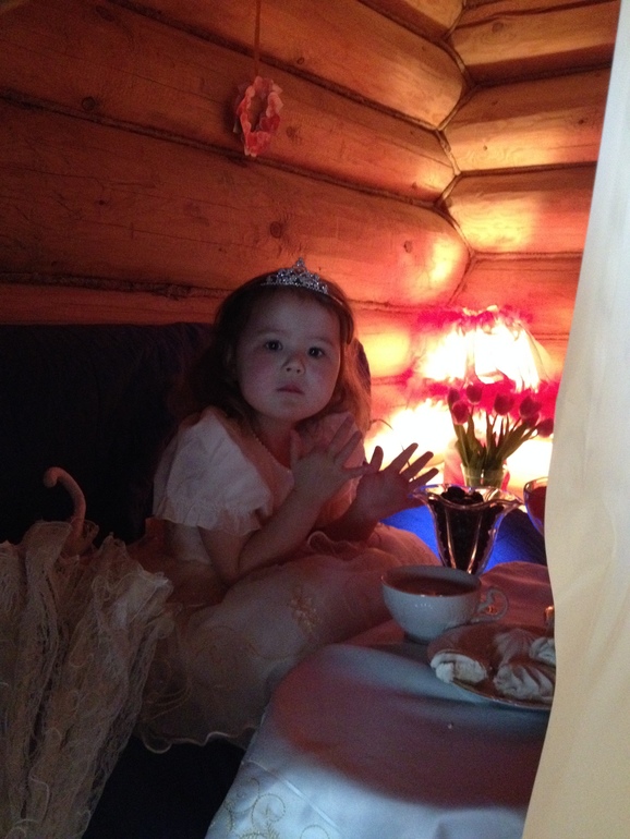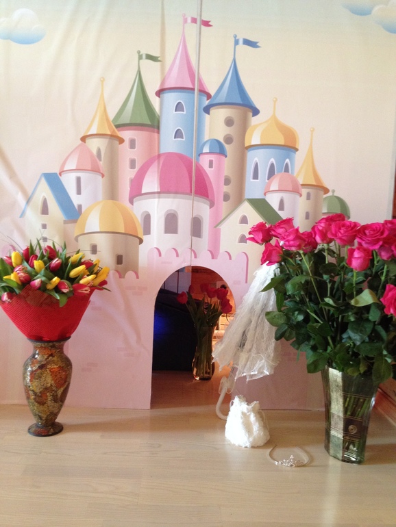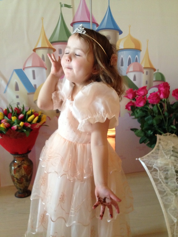 Это был день превращения обычной девочки в принцессу. Превращение началось сразу по пробуждении: вместо нарядного платья - бальное, с оборками, вместо тапок -туфельки, прическа - корона, а еще подарочки - зонтик и сумочка, все принцессное.