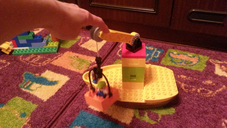 Аттракцион ''Вокруг света'' . Используем основу пиратского Корабля (можно большую пластину, главное, чтобы устойчиво было), кран из набора с поездом и элементы от вагончиков. Можно крутить по кругу, можно качать как на обычных качелях.