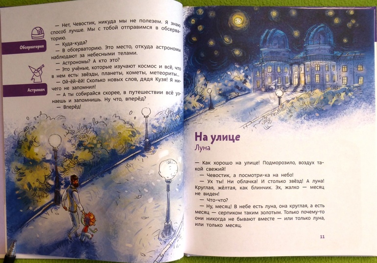 Книга познавательная, интересная, с красочными рисунками. Эта книга развивает любопытство. Необычный для энциклопедии формат диалогов помогает запоминать материал быстро и весело. Простым и доступным языком для дошкольника объясняется такая сложная наука, как астрономия и изучение астрономии превращается в настоящее удовольствие.