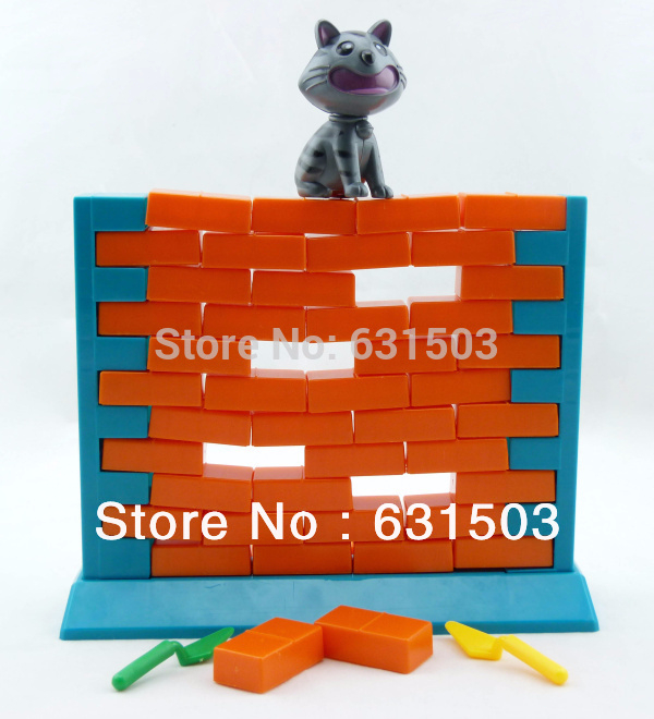 Очень простая и интересная игра. Строим стену из пластмассовых кирпичей и потом поочереди выталкиваем по кирпичику (иногда и по три сразу). Каждый свои вытолкнутые кирпичики складывает отдельно. Когда стена рушится - подсчитываем у кого кирпичей больше.