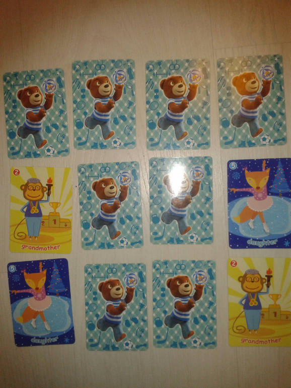 Если карточки оказались не парными (дочка обеъяна и сынок свинка), то игрок переворачивает их снова рубашками вверх.