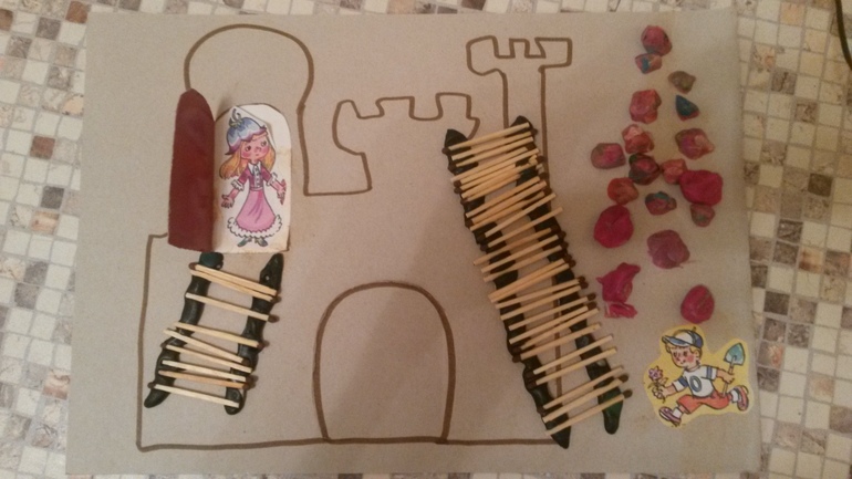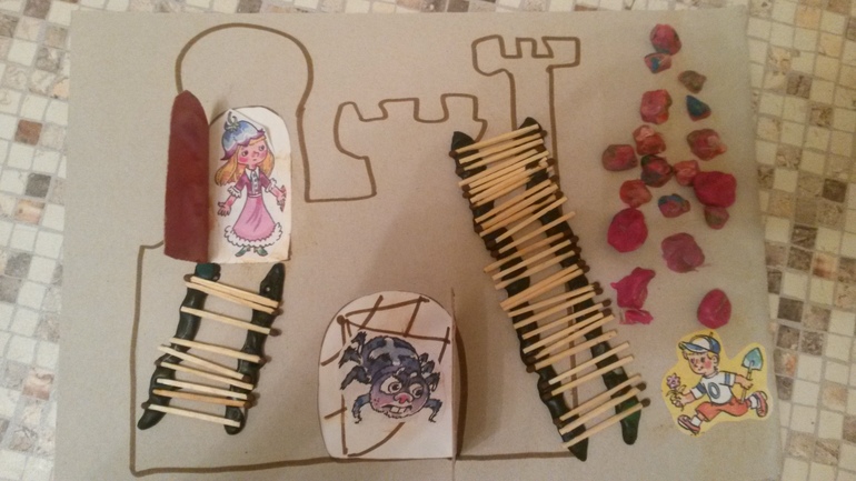Её охраняет страшный паучище. Но отважный принц по высокой лестнице заберется на башню, спасет принцессу и спустится вместе с ней по другой лестнице. Ха-ха-ха! Обманули паука!