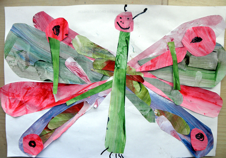 Все это дело подсыхает, вырезаем детали, как в книжке, приклеиваем. Усики, мелкие детали рисуем фломастером: