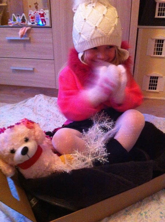 о,жаль я не сфотографировала лица прохожих, когда мы набирали снег в пакет