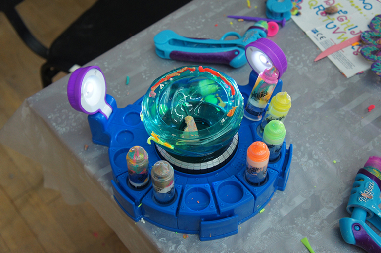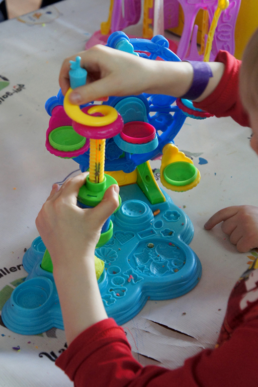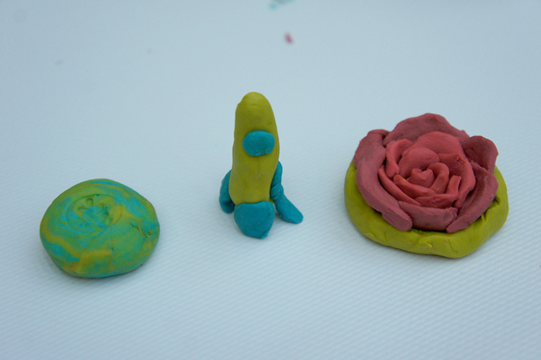 Предлагалось несколько на выбор. Если ребенок хотел вторую игрушку слепить, давали без проблем! И взрослым давали! Так что когда будете думать о цене за билет, помните, что все материалы включены в стоимость ( а стоит такой набор почти 400р).