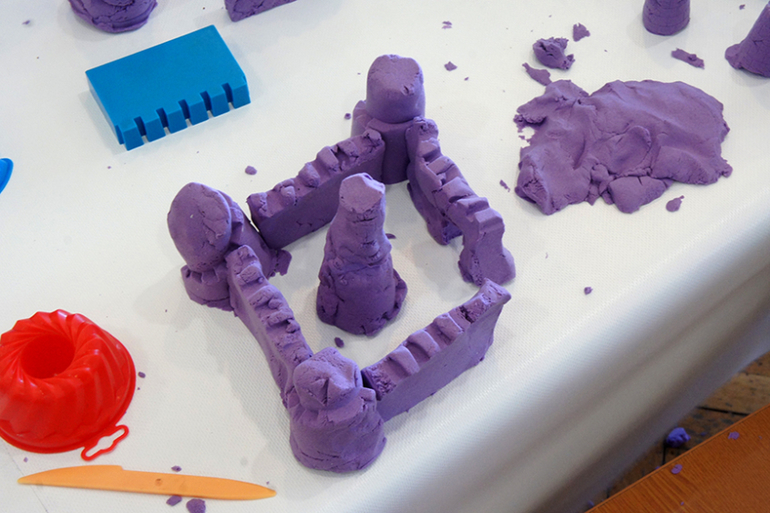 С совсем маленькими можно играть в песок (а их несколько разных!), с теми что постарше в плей-до и глину. И конечно пластилин всем возрастам показан)))