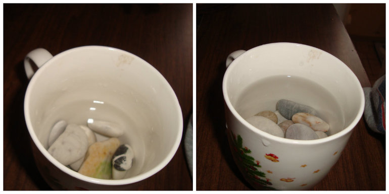 Все видно на фото-налили немного воды в стакан и кидали камушки. Результат налицо. Кто хочет напиться?
