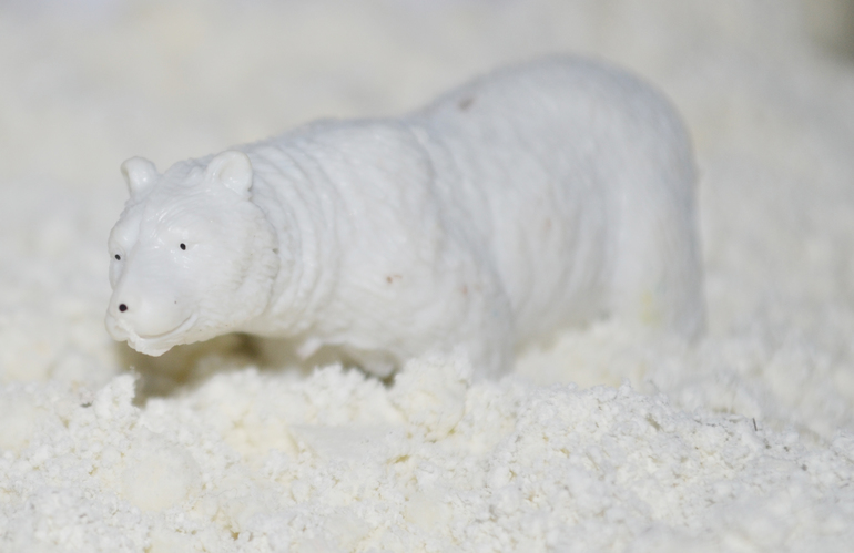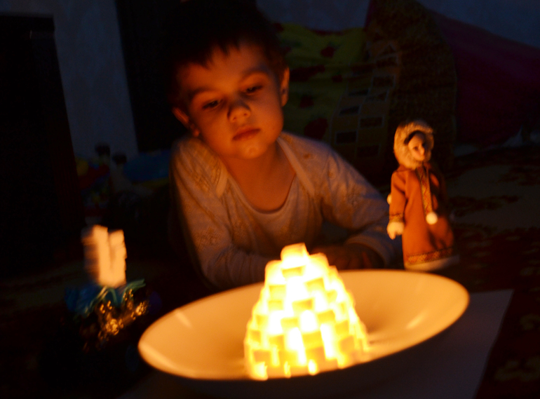 Иглу мы сделали из кускового сахара, внутри горит свеча.