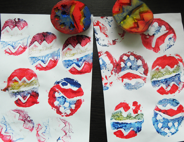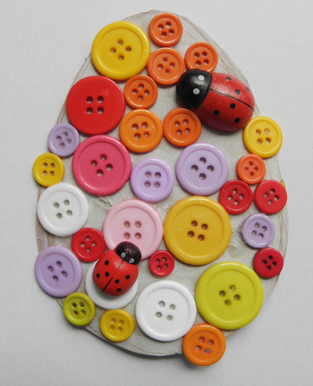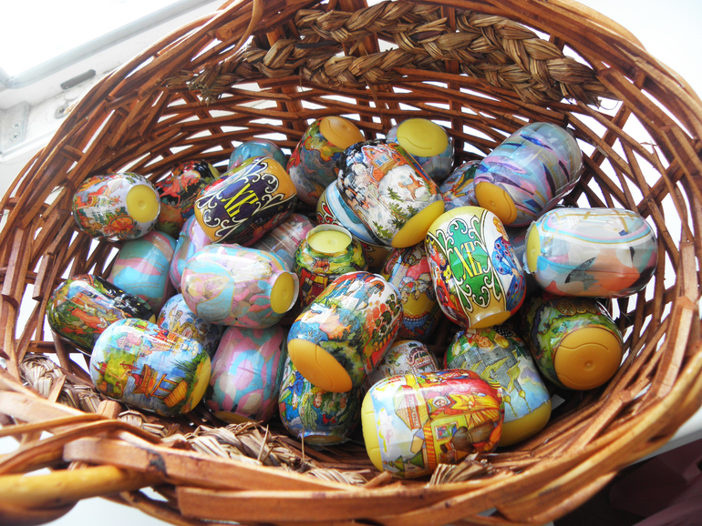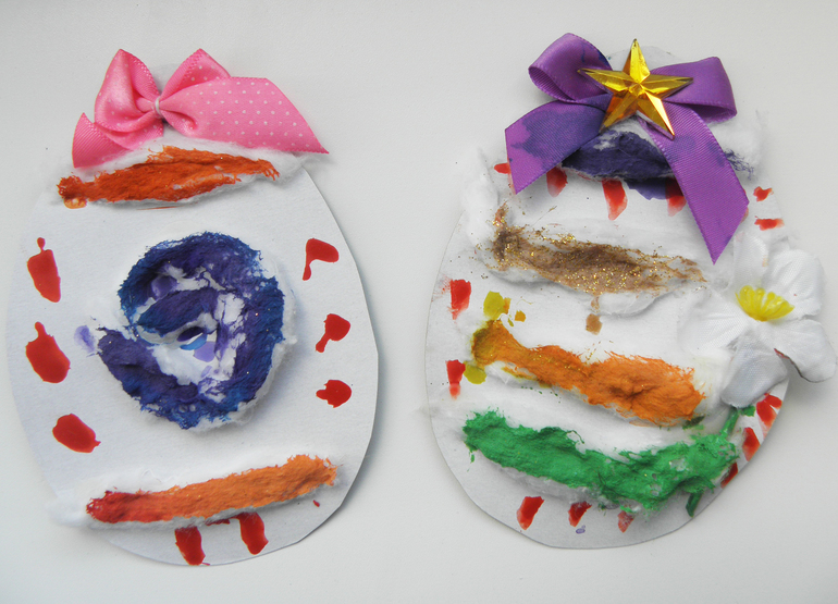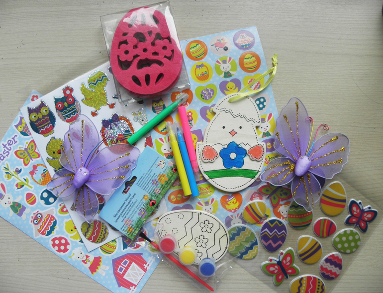 Еще были такие картонные яички-поделки, все это дело потом пошло на гирлянды.