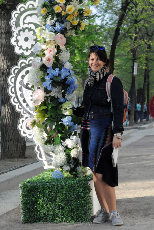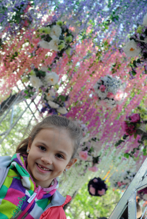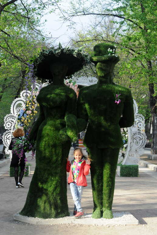 Все очень красиво, в цветах, Ксюхе понравились скульптуры из травы: