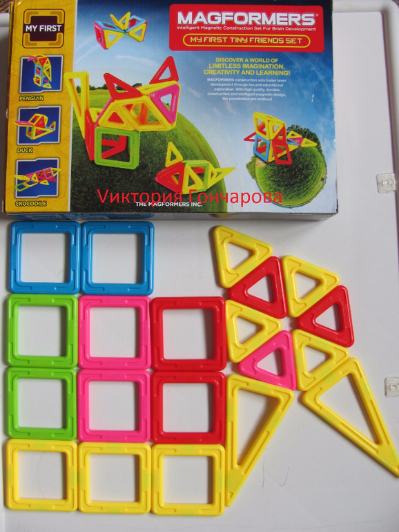 Сегодня получили долгожданную посылку с магнитным конструктором Magformers. Доехал до нас набор Magformers Window Basic 14.