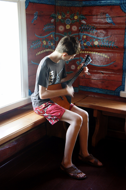 Когда мы пришли мальчик играл на балалайке. Здорово играл!