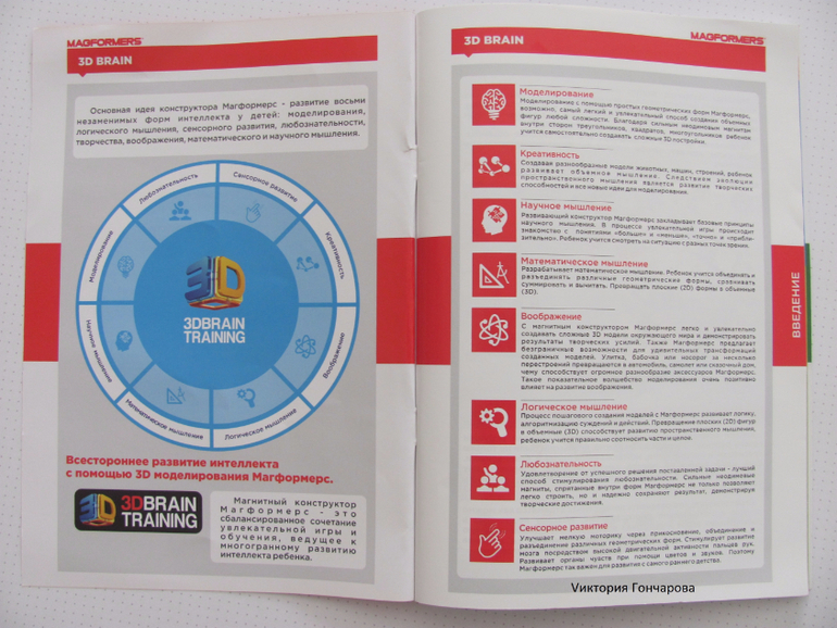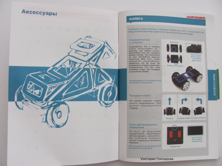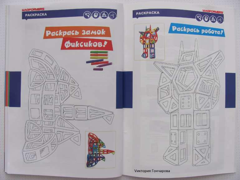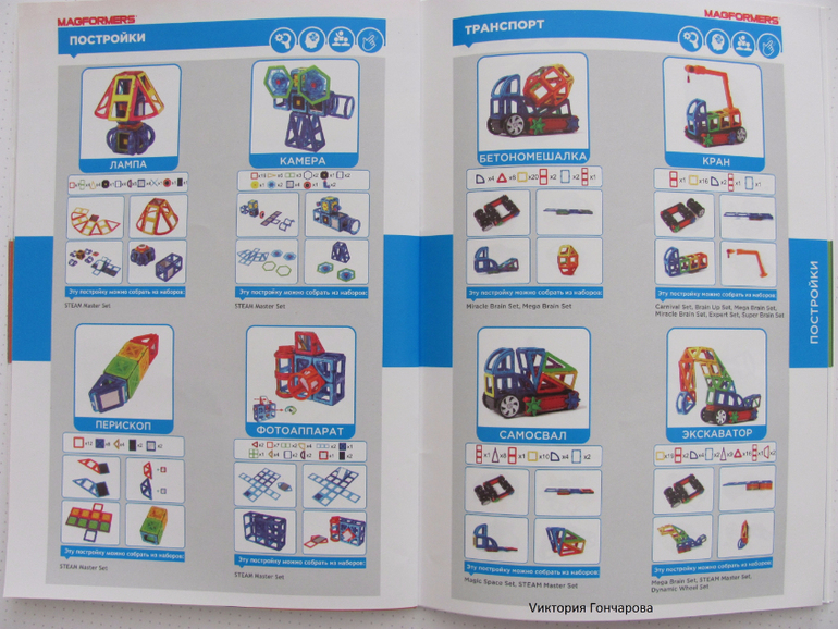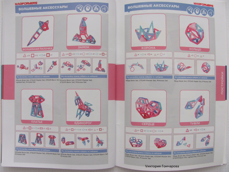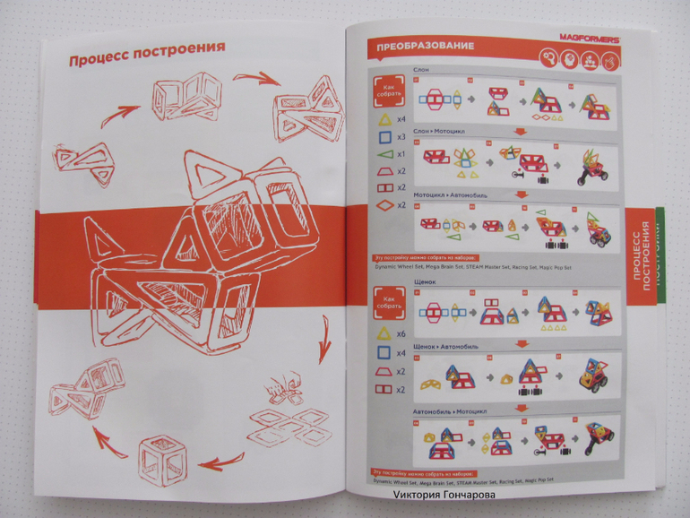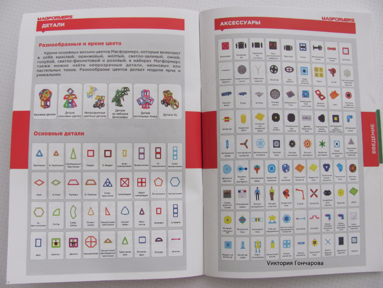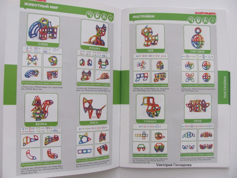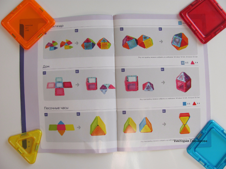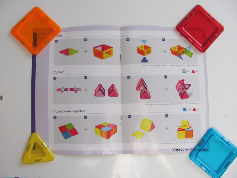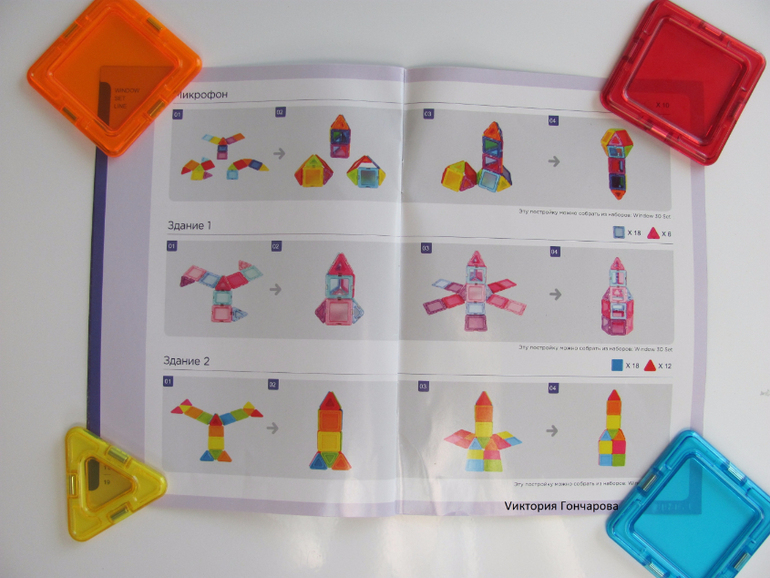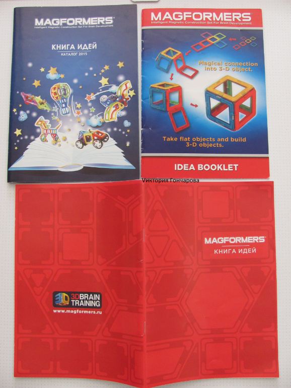 + красочная инструкция с постройками. И если вы заказываете конструктор с официального сайта magformers.ru, то вы получаете дополнительную "книгу идей".