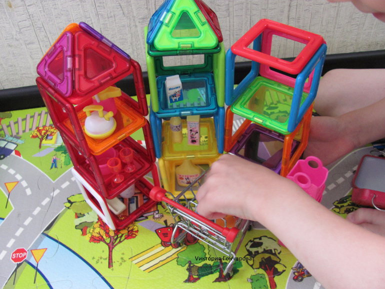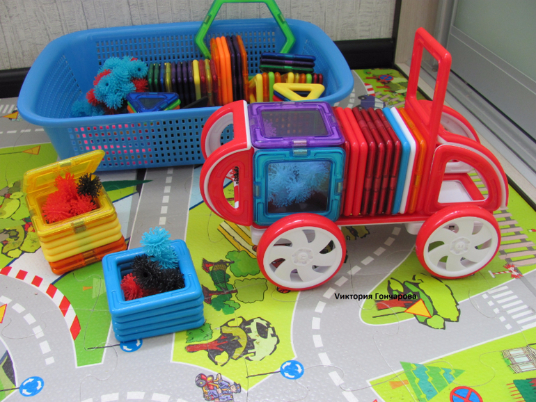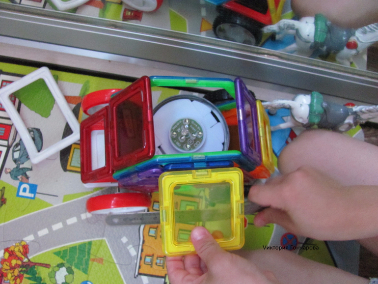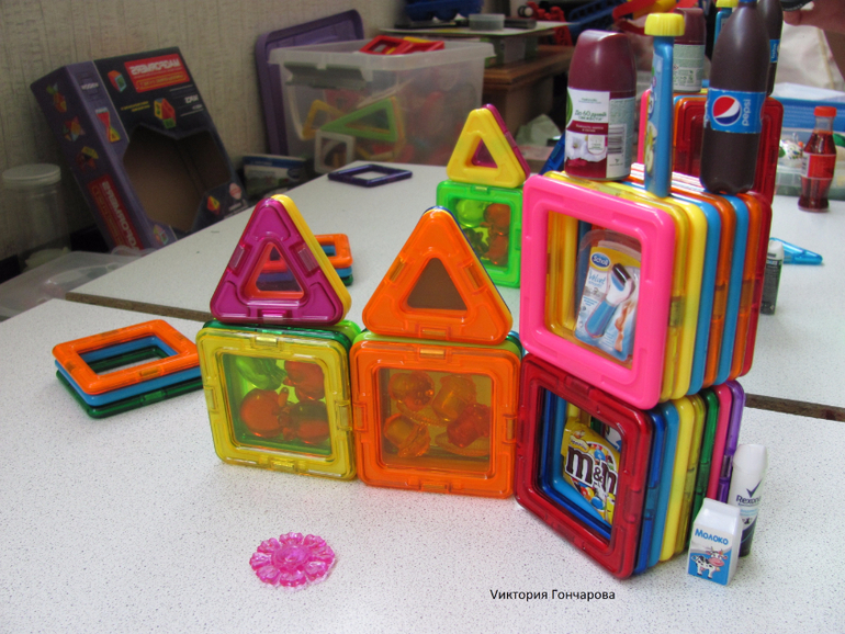 Мы назвали ее "Цветные квадраты Magformersа", а что - красиво ведь))